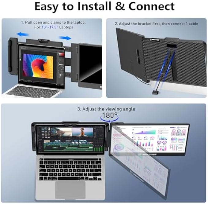 • Wide Compatibility & Reliable Service: The monitor extension for laptop portable monitor supports a wide range of devices and operating systems, including Intel, AMD, ARM, Android, Windows, Mac,M1,M2, Chrome, Linux, Type-C phones, PS4, Xbox, Switch, M1 Pro, M2 Pro/and other processors. In addition, we also provide timely and effective technical support, If there has any question with this laptop screen extender monitor portable, please feel free to contact us, we will reply you within 24 hours.
