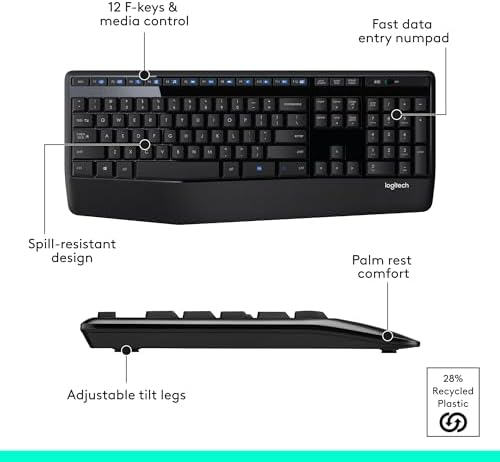 Logitech MK345 Wireless Keyboard and Mouse Combo with Palm Rest, 2.4 GHz USB Receiver, Compatible with PC, Laptop, Black