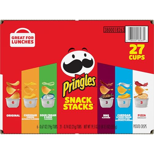 Pringles Potato Crisps Chips, Snack Stacks, Lunch Snacks, Office and Kids Snacks, Variety Pack (27 Cups)