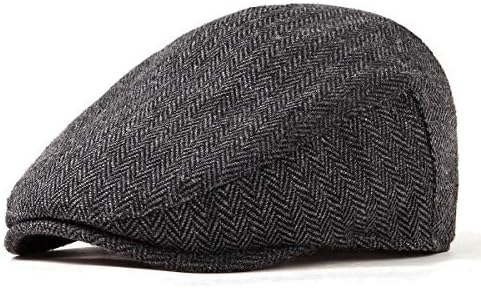 Herringbone Flat Ivy Newsboy Cap for Men Classic Wool Blend Tweed Cabbie Hat