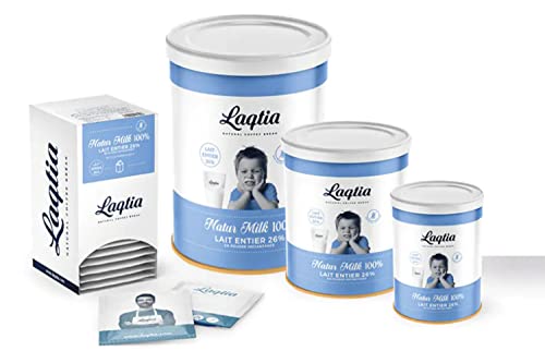 Instant Full Cream \/ Whole Milk Powder PACKETS by Laqtia, 18 Count Box, Makes an 8oz glass of Milk, Non GMO, Free of bST and rBGH, made using 100% European Dairy, product of Spain (Convenient On-The-