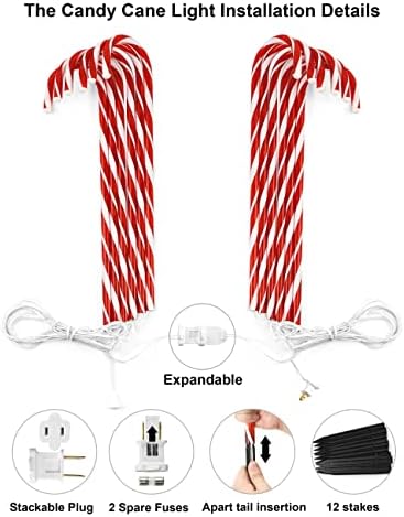COOLWUFAN 12 Pack Christmas Candy Cane Pathway Markers, 22'' Candy Cane Christmas Decorations Pathway Lights Outdoor with 72 Warm Lights for Xmas Holiday Party Walkway Patio Garden Yard Lawn D