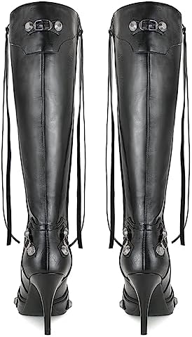 Dsevht Women's Stiletto Black Knee High Boots Sexy Pointed Toe Boot Fashion Trendy High Heel Boots Zipper