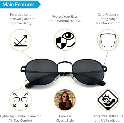 J+S Rehua Old School Round Polarized Sunglasses for Women Men | Spring Hinge Metal Frame | Polarized 100% UV 400| Medium Fit