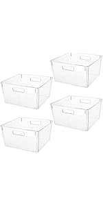 Clear Plastic Storage Bins with Lids, Perfect for Kitchen Organization or Pantry Organization and Storage, Stackable Fridge Organizer Bins, Storage Containers for Organizing, Cabinet Organizers
