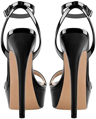 onlymakerheels Platform Stiletto High Heels for Women, Round Open Toe Ankle Strap Sexy Heeled Sandals for Wedding Party Dress