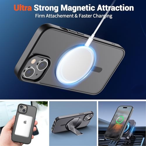 SUPFINE Magnetic for iPhone 15 Case (Compatible with MagSafe) (Military Grade Drop Protection) Translucent Matte Shockproof Phone Cover, Black
