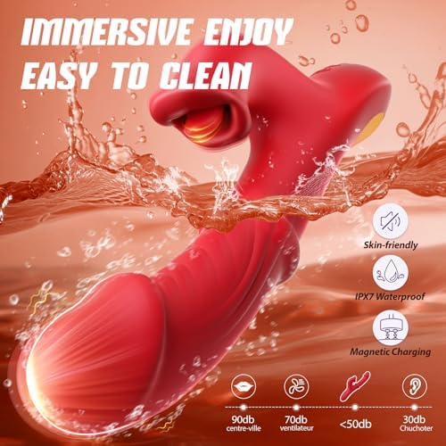 Toendi 推力振动器性玩具,女性假阳具成人性玩具 G 点振动器带滑动环 7 个推力假阳具和 10 个舌头舔 10 种振动模式,兔子振动器适合女性情侣游戏