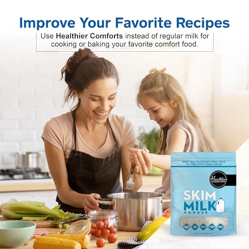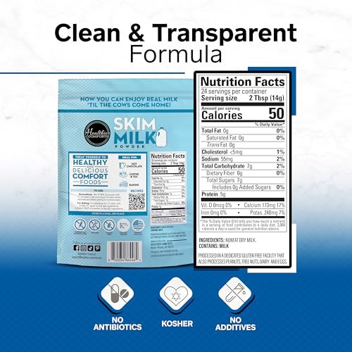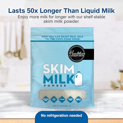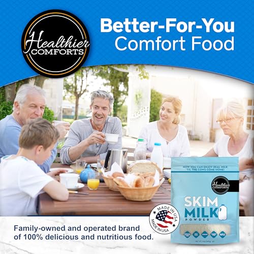 Healthier Comforts Skim Milk Powder | Fat Free, Shelf Stable | Kosher, Gluten Free, Non-GMO, Hormone and Antibiotic Free | Perfect for Shakes, Smoothies, Coffee Creamer, Baking | Made in USA (12oz)