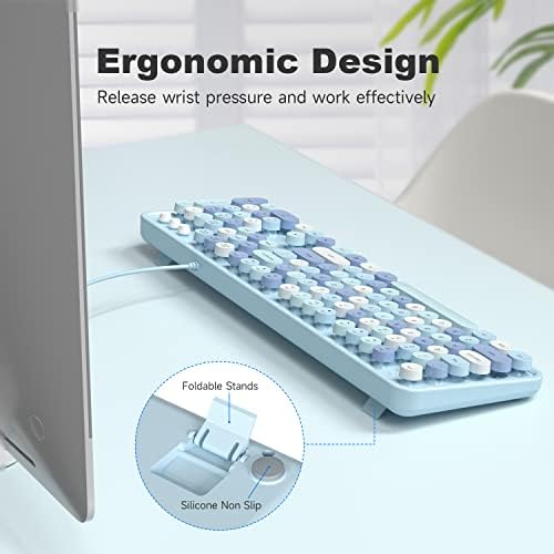 KNOWSQT Wired Computer Keyboard - Blue Colorful Retro Full Size Round Keycaps Plug and Play Typewriter Cute Keyboards for Windows, Laptop, PC, Desktop, Computer