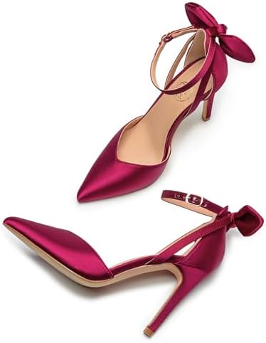 Trary Heels for Women Closed Pointed Toe Heels Women's Pumps Stiletto High Shoes with Bow Knot Comfortable Ankle Strap Office Party Wedding Dress Shoes 3.74" Heel