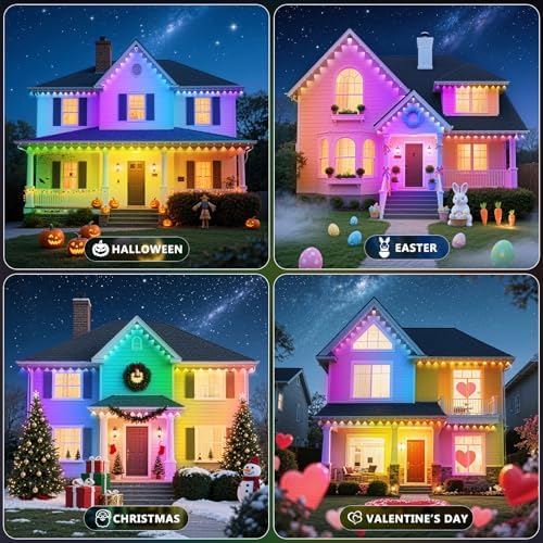 LETIANPAI 300FT 永久户外灯,RGB Eaves 灯带应用程序控制遥控器,DIY 场景模式 IP67 防水在前夕照明,户外灯用于装饰,花园装饰,房屋,派对,假日