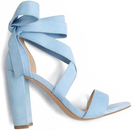 Strappy Heels for Women Chunky Heels High Heeled Sandals with Lace Up Fahsion Casual Nude Block Heel Sandals