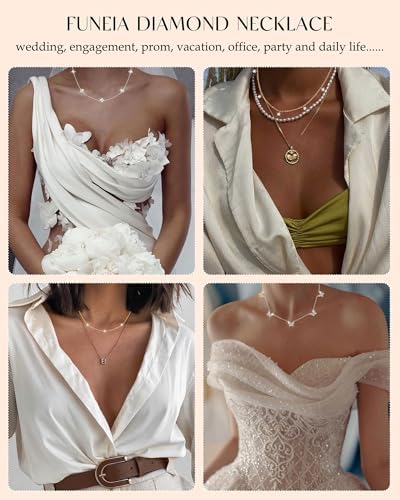 FUNEIA Dainty Silver Gold Necklaces for Women Trendy Non Tarnish 14K Gold Plated Cubic Zirconia Necklace Layered Cute Butterfly Heart Station Choker Necklace Stack for Wedding Prom Brides Jewelry