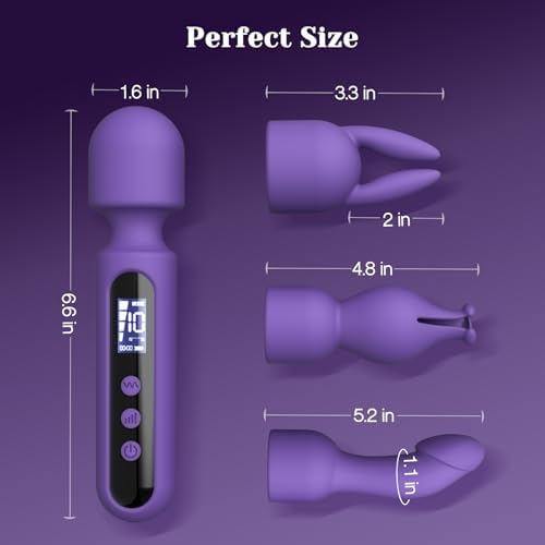 Tracy's Dog Wand Vibrator Kits, Couple Adult Sex Toys with 3 Attachments for Clit, G Spot, Glans, Clitoral Stimulator Vibrating Dildo with LCD Display, 10 Patterns 4 Speeds for Sexual Pleasure